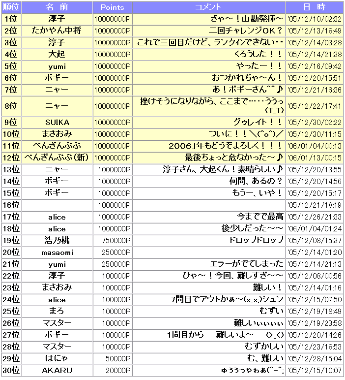 –ž“_’B¬ŽÒƒ‰ƒ“ƒLƒ“ƒOƒxƒXƒg‚W