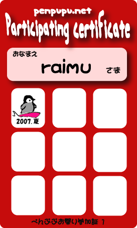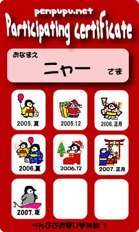 Copyright (C) 2003 penpupu.net All Rights Reserved |著作権について|ルールとマナー|推奨ブラウザ|