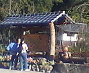 日本昭和村へ到着! これは最近よくあるおっきな道の駅にちょっとしたテーマパークがくっついたところです。昭和の頃のお菓子や小物、産業、建物、芝居小屋などがあります。また、岐阜の特産品や産地のとれたて野菜なんかもうってます。いつもこうゆうところではおいしい野菜をいっぱい買うんだけど、まずは、ピーマン、里芋、瓜、白菜、キャベツ、ししとうなんかを買いました。