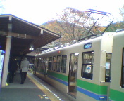 実はこの「鞍馬行き」は、まったくの偶然に決まった日程でした。父母の京都は、どちらかというと定番コース、ぷぷちゃんの京都はちょっと仏像マニアちっくな選択が多いのですが、今回はたまたま乗り合わせたバスの中で、外国人(多分ヨーロッパ系?)の車椅子の人とそのお連れが、「鞍馬」へ行くことを話していて、なんとなく行きたくなって突如行くことにしました。出町柳より叡山電車にのって、約30分、途中、比叡山行きの電車と別れて、鞍馬までいきます。