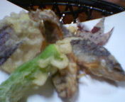 川魚と野菜の天麩羅です。なんと紅葉の天麩羅もありました。(紅葉の天麩羅は珍しくて目には楽しかったですが、特に美味しかったかは???)