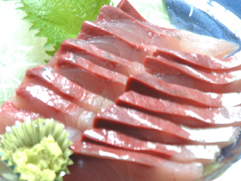 う~、さらにこれでもか・・・・の「おいしいもの」いっぱい! 天然物のブリです。これは、大きなブリを何軒かの家で分けてお造りにしてもらっています。養殖ものと違って、アブラ臭さが全然無く、とってもさっぱりとしたお味です・・・・ でも、養殖もののあの脂っこい感じも好きですけどね^^