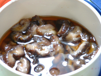 ナマコを甘酢で調理したものです。このコリコリした感じがとっても大好きです。我が家ではこのナマコがとっても大好きなのに、叔父さんは「これは好き嫌いあると思うけど・・・・・」 と、毎年恐る恐る持ってきます^^ そして、「ウチはこれが一番大好きなの、いつでももっともっと持ってきて」と毎年言っています(笑) みなさんはどうですか?