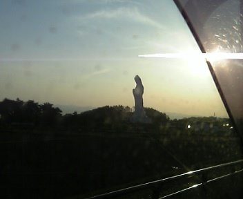 会津若松に近づくと遠くに巨大な観音像が…第1日目はこのあたりでおしまい。