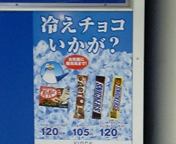 駅のキオスクではスニッカーズなどを冷やした「冷えチョコ」が好評~♪