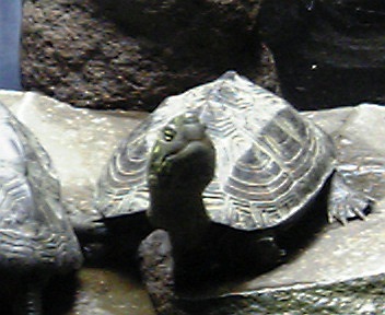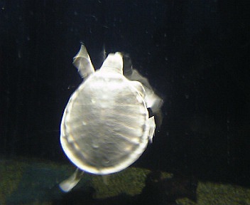 なんだか変わった甲羅の亀。ネットに入ったチーズみたい…