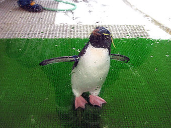この水槽、見ている側も結構気温が低くて、そのせいか見ている人が極端に少なかった気がします。フツーどこでもペンちゃんの周りは結構人だかりができているのに・・・・・。撮影に萌えているぷぷちゃんはあまり気にならなかったけど、はたと、まささん寒いんじゃないかと思って声をかけてみたらやっぱり寒かったみたいで暫く出たり入ったりして調節していました。ごめんね、前回の掛川花鳥園では炎天下へ連れ出すは、今度はご飯食べそびれた上に冷蔵庫に入れられたみたいで・・・・・。ペンギン詣ではなかなかハードなのだ。