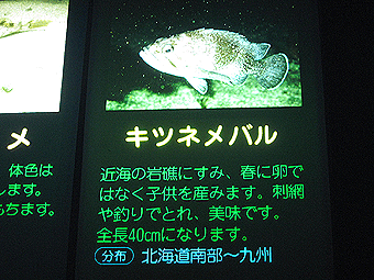 ん? 魚の解説が・・・・。どこの水族館でも水槽に魚の解説が書いてありますが、よくよく見ると・・・・・「美味です」!? まぁ、美味ではあるが水族館の魚の解説で「美味です」って書いてあるのはちょっと珍しいかも・・・・(なくはないが)。