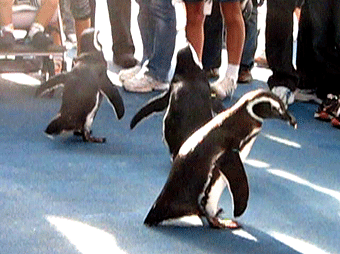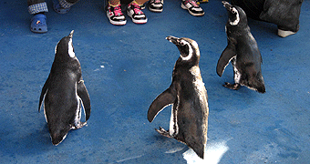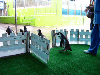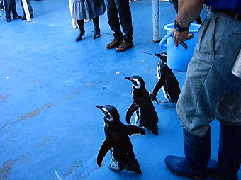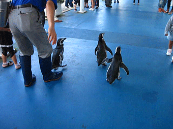 「お散歩タイム」として、水槽からペンちゃん達が出てきてみんなの前に近寄ってきます。