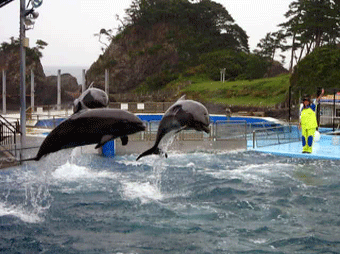 多頭イルカのみんなでジャンプ