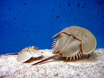 カブトガニ 「生きた化石」とも呼ばれ、天然記念物。