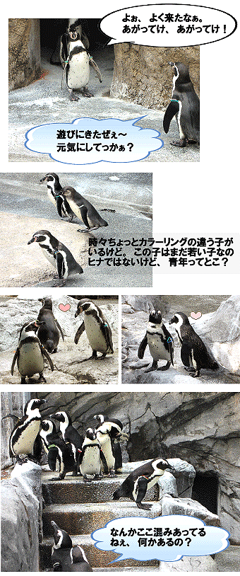 なんとなく生あくびばかりしているぺんぎんが多くて、脱水症状ぎみなのかしら??? 水浴びとかした後は元気そうですが、急な温度の変化に体温調節がつらいですね・・・・