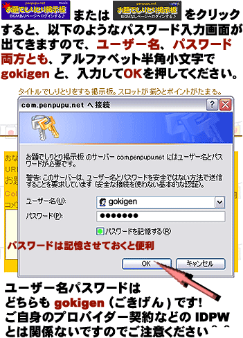 さて、現在は円滑に利用できているこのコンテンツですが、ログインの仕方がわからない、ログインできない、エラーになるなどの事象がありましたら、個別にお問い合わせください。各ページの書き込みは全て目を通しているのでどこへ書き込んで戴いてもかまわないですが、まとまった質問やエラー報告は下記のメイン掲示板までお願いします。